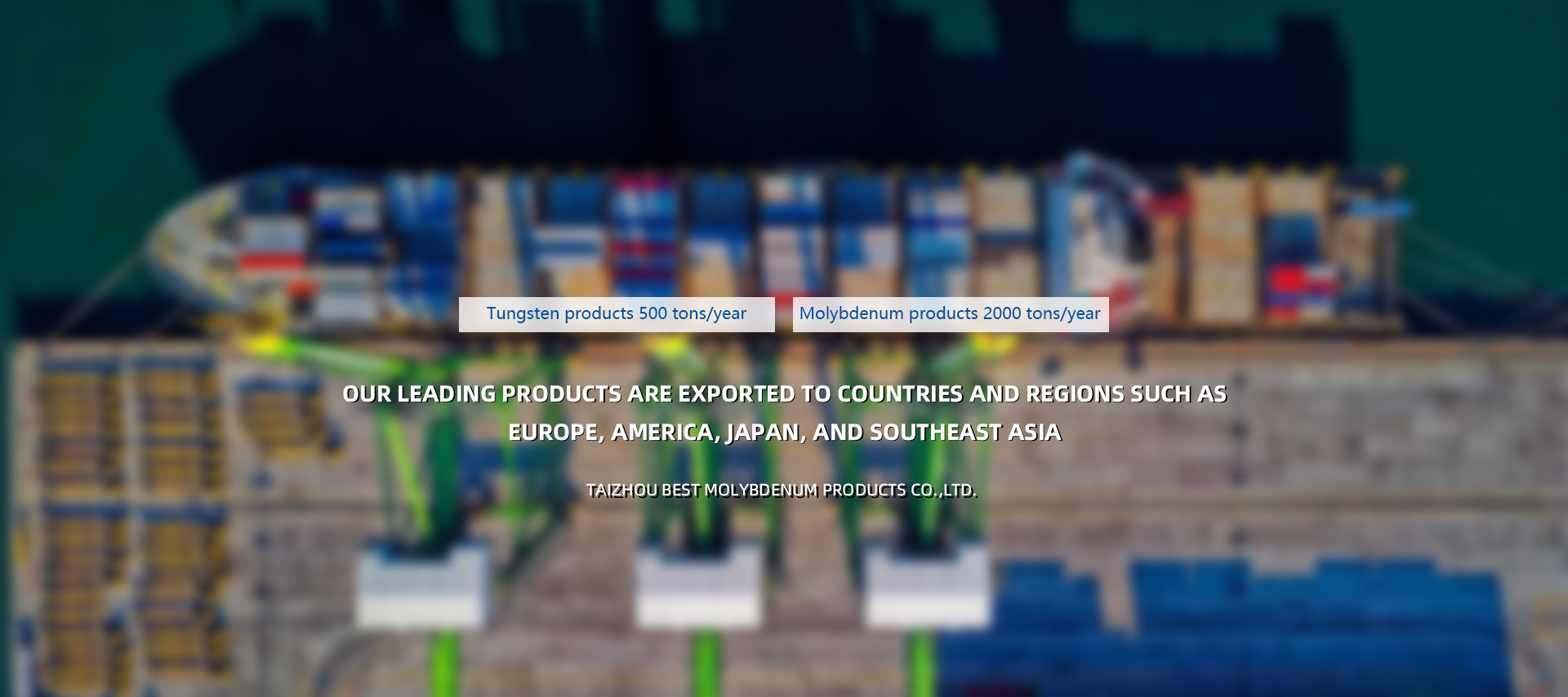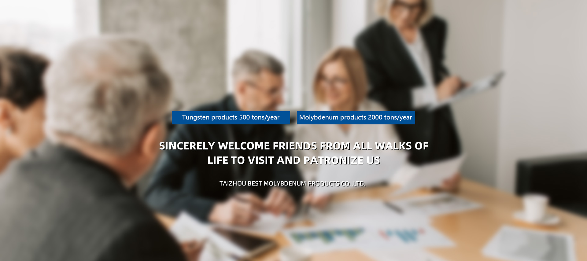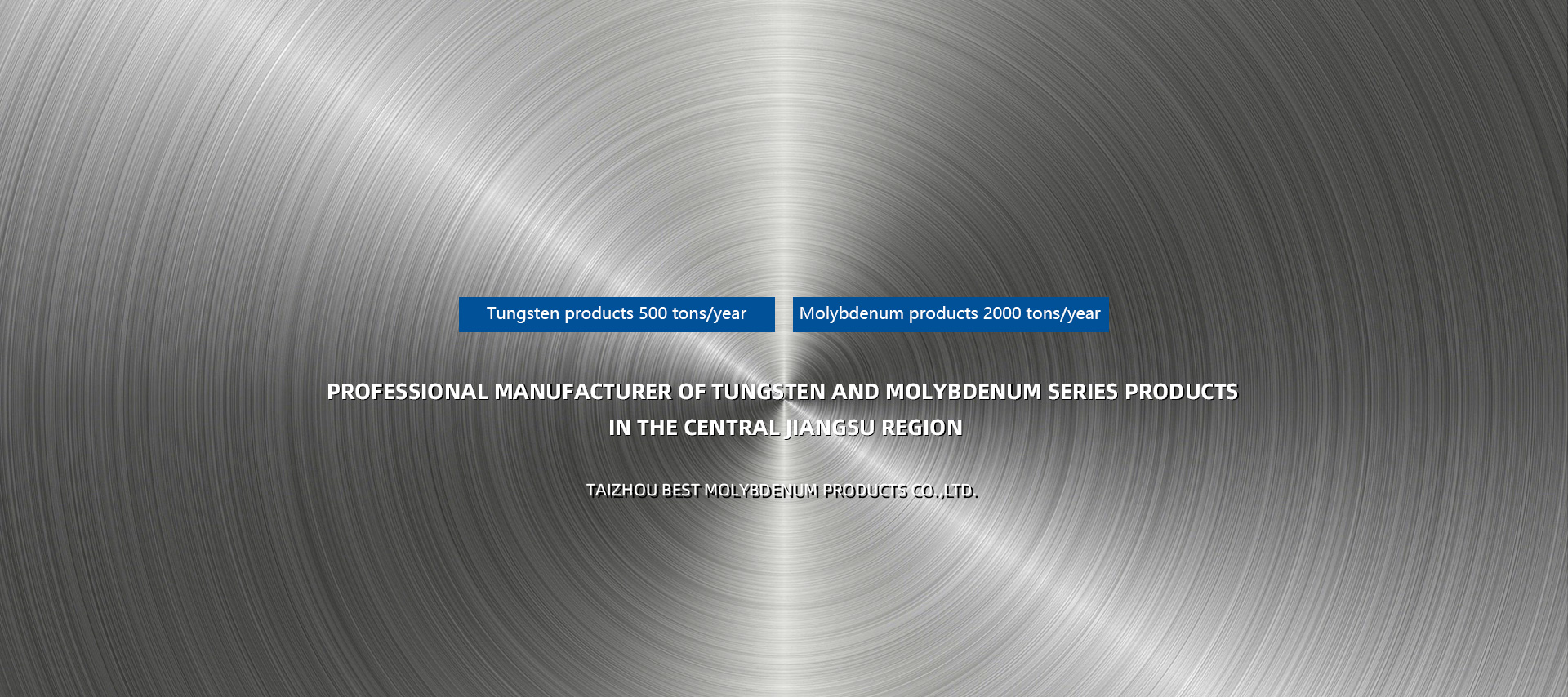 Taizhou Best Molybdenum Products Co., Ltd. is a national high-tech enterprise represented by the production of tungsten and molybdenum series products, and also operates multiple varieties of rare metal materials. Annual production of 500 tons of tungsten products and over 2000 tons of molybdenum products.