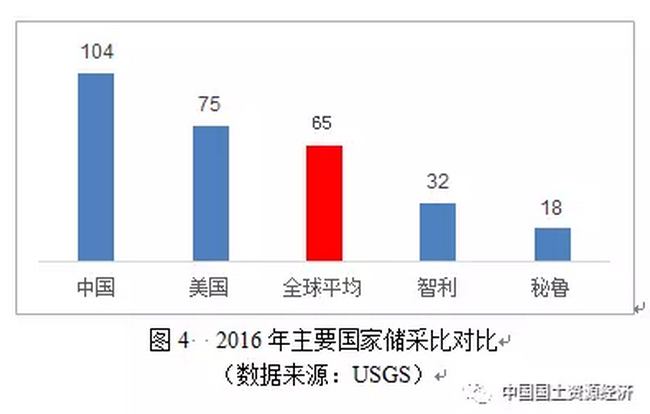 2016年全球鉬礦儲(chǔ)量1500萬(wàn)噸,年開(kāi)采量23萬(wàn)噸(金屬量),據(jù)此測(cè)算全球鉬礦儲(chǔ)采比為65年,足以保障未來(lái)全球經(jīng)濟(jì)發(fā)展需要。四大資源國(guó)鉬礦儲(chǔ)采比為:中國(guó)104年、美國(guó)75年、智利32年、秘魯18年,中國(guó)和美國(guó)保障程度高于全球平均水平(圖4)。